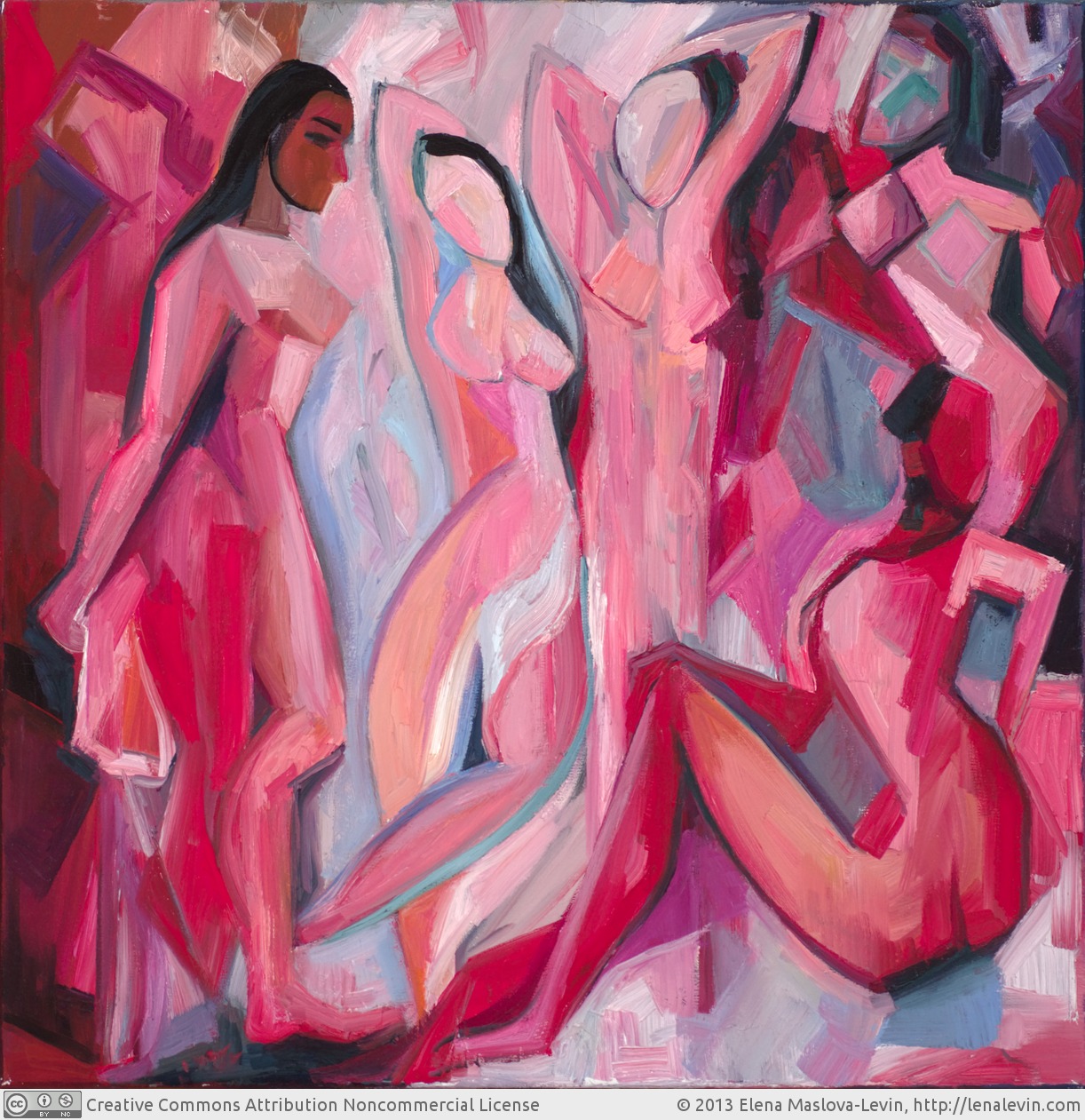My process for this series obviously calls for this last way of reading sonnets, at least at some point (though not exclusively): I have to be in a place from which I can say the words as though my own, taking the part of "I". But with some of them, something unusual happens with the "thou": the part of "thou" suddenly begins to feel as though taken by Shakespeare himself, and my painting readdresses his verse right back at him (with the original "thou" fading into the background). It first happened with sonnet 26, and now again with this one. How could it not, I wonder, when "thou" of this sonnet is not (just) the source of inspiration, but almost the real author of the poem, the origin of anything worthy in it? Arguably, all this more accurately describes my painting's relationship to Shakespeare than his poem's relationship to his young friend. For who's so dumb that cannot write to thee, In this case, of course, I've called on a second Muse as well, that of Pablo Picasso, substituting his Demoiselles d'Avignon for five of the ten muses of the sonnet (and suggesting the other five by the negative spaces between them). As an aside, I cannot help but wonder whether Picasso ever imagined being in the same personal Pantheon with Shakespeare... A more pertinent question, though, is whether it's "proper" to merge muses with whores like this, using the now almost iconic image of "the brothel of Avignon" as a visual anchor for this sonnet painting (however "tamed" and all rosy it became under my brush). But the boundary between the high and the low, between tragedy and farce, between a goddess and a whore – it's not as clear and cozy as some people would prefer it to be. As a matter of fact, it might even be non-existent, a matter of perspective, a subtle change in the point of view; and nobody, I believe, knew it better than Shakespeare did. He doesn't seem think much of those old nine which rhymers invocate (one must assume, these are the same rhymers that rehearse their stuff on vulgar paper). The classical Muses of antiquity don't appear in the sonnets except in the context of "rival poets", which suggests that it's their invocations that occasionally bring the muses into Shakespeare's sonnets, not his own. And what about his own Muse, mentioned in the first line? Who is she? His inner spirit of inspiration? The friend himself, the tenth Muse? The whole sonnet plays out its drama around the question of whether it's the poet's own inspiration or the quality of his subject matter that makes his verse worthy perusal, and seems to conclude that it's all in the subject, until we come across the slight muse in the couplet and are left to wonder: whom did he just slight? Himself? One of the old nine Muses? His beloved (who is, we must now believe, the Muse)? There is no definitive answer, just as there is no difference between the high and the low; it's this trembling, this vibration of meaning that makes the poem alive. Consider another bit of the sonnet where the meaning seems to vibrate between the high and the low: thine own sweet argument (discussed at length by Stephen Booth, p. 196). What one would expect from the context of this phrase would be something like thine own sweet self (the topic of the sonnets); the use of word argument seems to take it further, elevating the addressee from the role of "theme" to the role of "author", and his muse: he doesn't simply give the author the subject to write about, but in effect dictates the poem. It as if I, having established that my muse doesn't want subjects to invent while there is Shakespeare, would proceed to say that he pours "his own sweet colour harmony" into my paintings (which might well be true, by the way). Except there is another aspect to the word argument: as noted by Booth, this word also used to have obscene connotations: its French source, l'argument was a slang term for either male or female sex organs, and Shakespeare himself occasionally uses "argument" in the meaning of "vagina". In other words, Shakespeare splits the expected meaning (which is present nonetheless) and pushes it higher up and lower down at the same time, with a single word. And, of course, in the context this "high vs. low", "eternal vs. vulgar" game, Shakespeare couldn't miss the opportunity to play the two layers, two lexical registers of the English language, its native, vernacular Germanic roots vs. the "higher" influx of vocabulary from French and Latin (the distinction used to be more obvious to the speakers then than it is now). Note, in particular, how the classical goddesses of antiquity are invocated, while the tenth muse, thou of the sonnet, should be called on, two variants of the same verb used almost next to one another. And, in a by now predictable reversal of high and low, invocation must produce something vulgar, while calling on should bring forth something eternal. To sum up, it is this game of perspective, rather than simply the image of "ten muses", that the painting picks up as its sweet argument: both in stealing Picasso's image of brothel to depict muses and in playing with the positive and negative shapes to transform five whores into ten muses. |